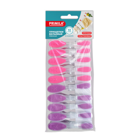 прищепки бельевые пластиковые, комплект 10 шт., 8,2см PRIMILA PREMIUM