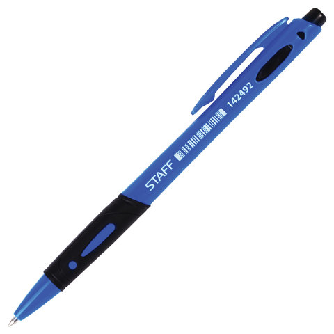 ручка шариковая автоматическая STAFF, корпус синий, синяя (24) [СА5219]